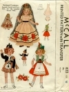 720 | Vintage doll clothes just like McCall children's patterns No. 717, 654 and 638. These dolls' clothes fit the Portrait dolls (designed by Dewees Cochran), also the Little Lady Dolls and some juvenile "Movie" dolls and Shirley Temple. Photocopy. 1939 | 20" | $20 |